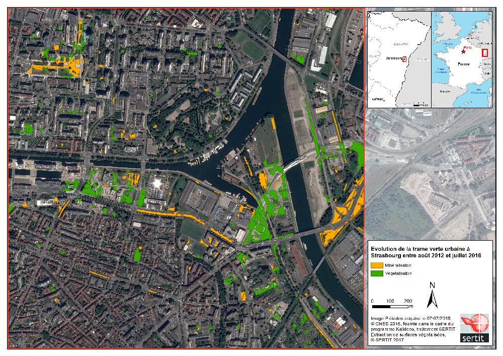 Evolution de la trame verte urbaine a Strasbourg entre aout 2012 et juillet 2016